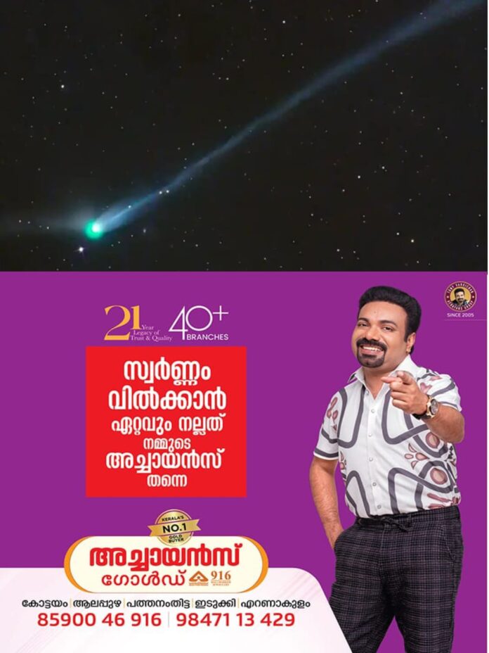 ഭൂമിക്കരികിലൂടെ കടന്നു പോകാൻ ഒരുങ്ങി ഒരു ചെറു പട്ടണത്തോളം വലുപ്പവും പച്ചനിറവുമുള്ളൊരു വാല്‍നക്ഷത്രം:വലിയ അളവില്‍ കാർബണ്‍ ഡൈ ഓക്സൈഡ് പുറത്തു വിട്ടു കൊണ്ടാണ് ധൂമകേതു സഞ്ചരിക്കുന്നതെന്ന് കണ്ടെത്തി: ഫെബ്രുവരി 17നുള്ളില്‍ ധൂമകേതു ഭൂമിക്കരികിലൂടെ കടന്നുപോകും.