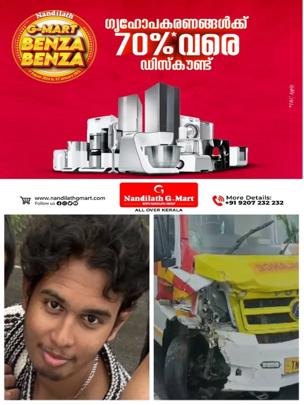 ബൈക്കിൽ ഉണ്ടായിരുന്ന റോസൻ എന്ന വിദ്യാർത്ഥിക്കും പരിക്കേറ്റിട്ടുണ്ട്. ആറുപേരടങ്ങുന്ന വിദ്യാർഥി സംഘം മൂന്നു ബൈക്കുകളിലായി ഷോളയാർ ഡാം കാണാൻ എത്തിയതായിരുന്നു. രോഗിയുമായി പോയ ആംബുലൻസാണ് അപകടത്തിൽപ്പെട്ടത്. സംഭവം സ്ഥലത്ത് പോലീസെത്തി പ്രാഥമിക നടപടികൾ സ്വീകരിച്ചു.