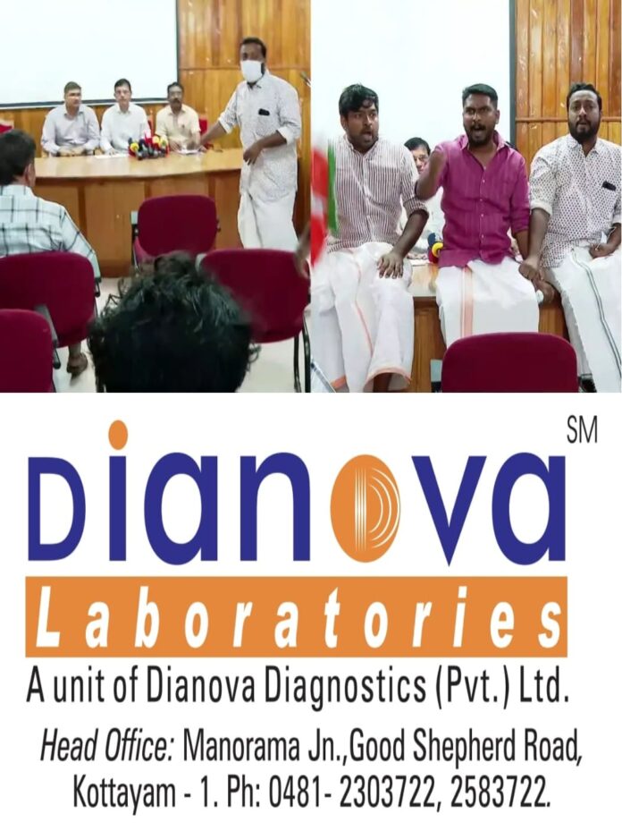 ആലപ്പുഴ: ആലപ്പുഴ വണ്ടാനം മെഡിക്കല് കോളേജിലെ ഡോക്ടർമാരുടെ വാർത്താസമ്മേളനത്തിനിടെ പ്രതിക്ഷേധാവുമായെത്തി യൂത്ത് കോണ്ഗ്രസ് പ്രവർത്തകർ. മെഡിക്കല് കോളേജ് സൂപ്രണ്ട് ഡോ. ഹരികുമാർ, പ്രിൻസിപ്പല് ഡോ. ബി പത്മകുമാർ എന്നിവരാണ് വാർത്ത സമ്മേളനം നടത്തിയത്. എന്നാൽ വാർത്തസമ്മേളനം നടക്കുന്നതിനിടെ ഡോക്ടർമാരുടെ മുഖം മറച്ച് മേശപ്പുറത്ത് കയറി ഇരുന്നുകൊണ്ടായിരുന്നു പ്രതിഷേധം.