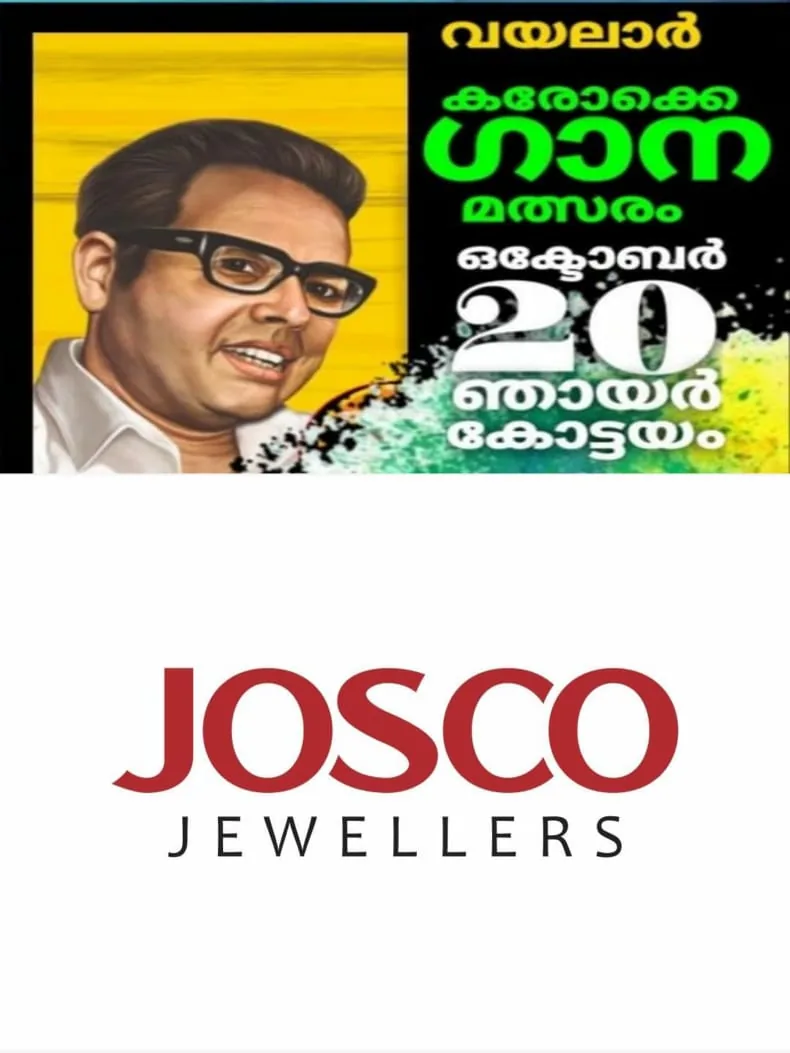 കോട്ടയം: വയലാർ രാമ വർമ്മയുടെ 49-ാം അനുസ്മരണത്തോടനുബന്ധിച്ച് നൊസ്റ്റാൾജിയ ക്രീയേഷൻസ് സംഘടിപ്പിക്കുന്ന മൂന്നാമത് വയലാർ കരോക്കെ ഗാനമൽസരം ഒക്ടോബർ 20 ന് കോട്ടയം കൊല്ലാട് വച്ച് നടത്തുന്നു. വയലാറിന്റെ ഗാനങ്ങൾ മാത്രമാണ് മത്സരത്തിൽ പാടാൻ സാധിക്കുകയുള്ളൂ. പ്രഗത്ഭരായ സംഗീത സംവിധായരും സംഗീതാധ്യാപകരം വിധികർത്താക്കളായിരിക്കും.