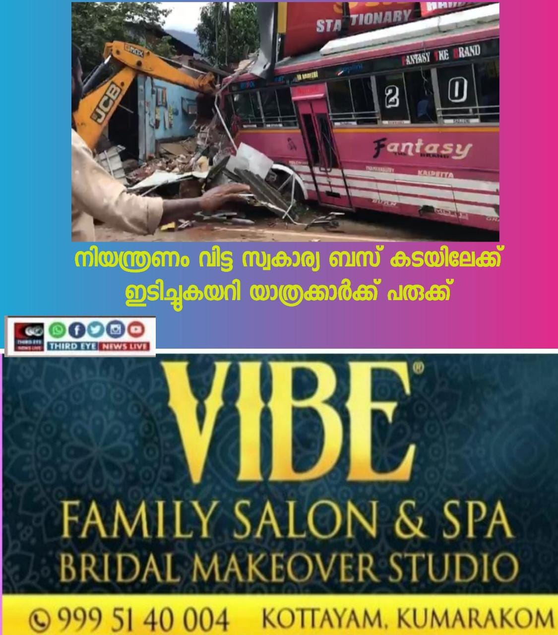 ഫയര്ഫോഴ്സും പൊലീസും നാട്ടുകാരും ചേര്ന്നാണ് രക്ഷാപ്രവര്ത്തനം നടത്തിയത്.ഇന്ന് രാവിലെ എട്ടരയോടെയായിരുന്നു അപകടം. നിയന്ത്രണം നഷ്ടപ്പെട്ട സ്വകാര്യ ബസ് ലോറിയുമായി കൂട്ടിയിടിച്ചാണ് കടകള്ക്കിടയിലേക്ക് ഇടിച്ചുകയറിയത്.ബസിലുണ്ടായിരുന്ന പരുക്കേറ്റ യാത്രക്കാരെ വൈത്തിരി താലൂക്ക് ആശുപത്രിയില് പ്രവേശിപ്പിച്ചു.