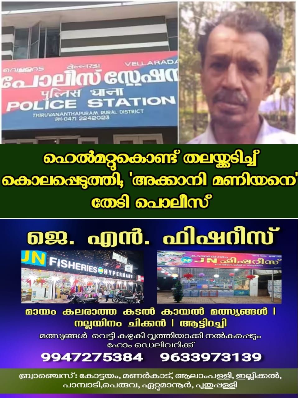 തിരുവനന്തപുരം: ഹെൽമെറ്റ് കൊണ്ട് മധ്യവയസ്കനെ തലക്കടിച്ച് കൊലപ്പെടുത്തിയ സംഭവത്തിലെ പ്രതിയ്ക്കായി അന്വേഷണം ഊർജ്ജിതമാക്കി പൊലീസ്. മലയിൻകാവ് സ്വദേശി ശാന്തകുമാർ (48) ആണ് മരിച്ചത്. കൊലപാതകത്തിന് ശേഷം മുങ്ങിയ പ്രതി അക്കാനി മണിയനെ കണ്ടെത്താനായുള്ള ഊർജ്ജിത അന്വേഷണത്തിലാണെന്ന് വെള്ളറട പൊലിസ് അന്വേഷണം വ്യക്തമാക്കി.