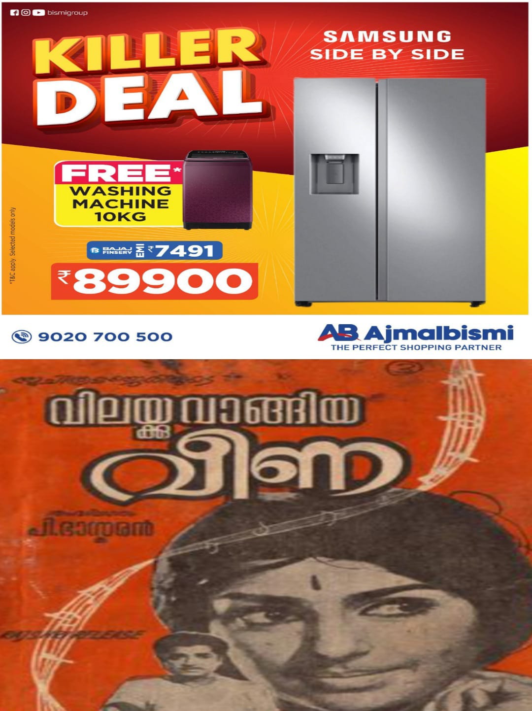കോട്ടയം: ശ്രുതി മധുരമായ ഗാനങ്ങൾ കൊണ്ട് മലയാളികളെ കോരിത്തരിപ്പിച്ച സിനിമയാണ് “വിലയ്ക്കു വാങ്ങിയ വീണ,. ഈ സിനിമ പുറത്തിങ്ങിയിട്ട് 52 വർഷമായി. 1971 ഡിസംബർ 24-നാണ് വിലയ്ക്കു വാങ്ങിയ വിണ തിയേറ്ററുകളിൽ എത്തിയത്. കവിയെഴുതി കവി സംവിധാനം ചെയ്ത ഒരു ഗായകന്റെ കഥ യാണിത്. അതായിരുന്നു സുചിത്ര മഞ്ജരിയുടെ ” വിലയ്ക്കു വാങ്ങിയ വീണ ” എന്ന സംഗീതമധുരമായ ചലച്ചിത്രം.