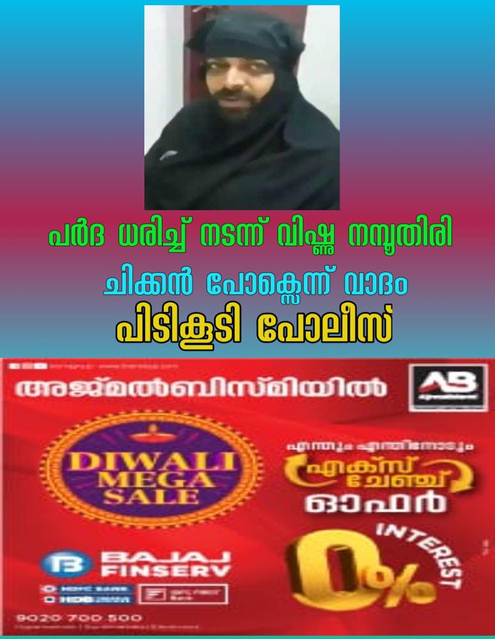 എന്നാല് ചിക്കന് പോക്സ് വന്നതിനാലാണ് പര്ദ്ദ ധരിച്ചെത്തിയതെന്നാണ് ജിഷ്ണു പൊലീനോട് പറഞ്ഞത്. കുറ്റകൃത്യങ്ങള് ഒന്നും ചെയ്യാത്തതിനാല് ജിഷ്ണുവിനെ വിട്ടയച്ചതായി കൊയിലാണ്ടി പൊലീസ് പറഞ്ഞു. കല്പറ്റ സ്വദേശിയായ ജിഷ്ണു നമ്ബൂതിരി മേപ്പയ്യൂരിലെ ഒരു ക്ഷേത്രത്തില് രണ്ട് മാസമായി പൂജാരിയായി ജോലി ചെയ്യുകയായിരുന്നു.