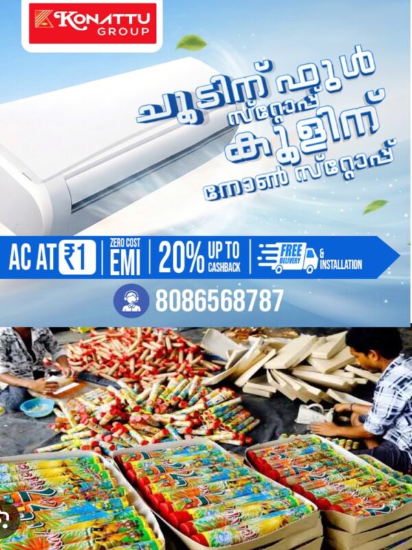 കമ്പിത്തിരി 100 എണ്ണം 100 രൂപ, ഓലപടക്കം 100 എണ്ണം 100 രൂപ, റോക്കറ്റ് 10 എണ്ണം 100 രൂപ, ഫോട്ടോഫ്ളാഷ് 5 എണ്ണം 100 രൂപ, ഹെലികോ്ര്രപർ 5 എണ്ണം 100 രൂപ, ബട്ടർഫ്ളൈ 10 എണ്ണം 100 രൂപ, ചക്രം 10 എണ്ണം 50, പാളിപടക്കം 20 രൂപ മുതല് 500 രൂപ വരെ, റോക്കറ്റ് 10 എണ്ണം 100 രൂപ മുതല് 250 രൂപ വരെ, ചോട്ട ഫാൻസി ഒരെണ്ണം 50 രൂപ തുടങ്ങിയവയാണ് വില.