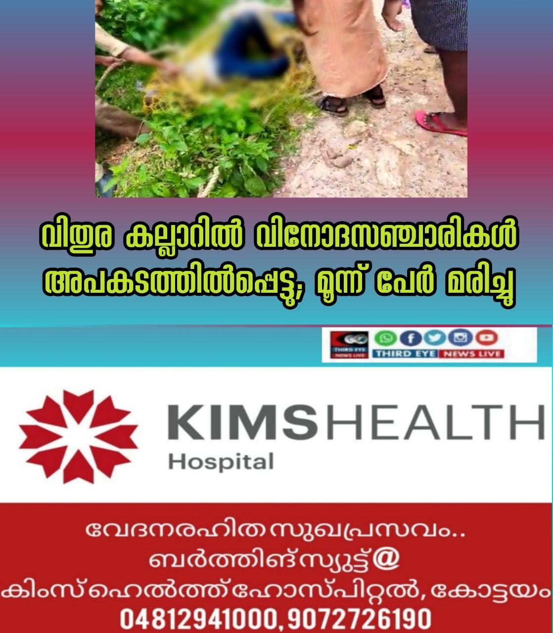 വിതുര കല്ലാറില്‍ വിനോദസഞ്ചാരികള്‍ ഒഴുക്കിൽപ്പെട്ടു ; മൂന്ന് പേര്‍ മരിച്ചു;മരിച്ചത് ബീമാ പള്ളി സ്വദേശികളായ യുവാക്കൾ