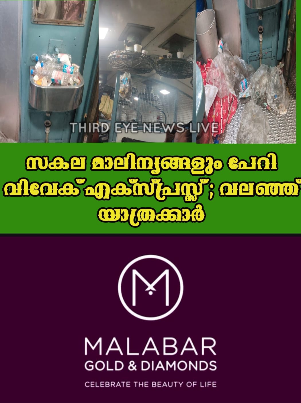 വിവേക് എക്സ്പ്രസ്സ്‌ കേരളത്തിലെത്തുന്നത് സകല മാലിന്യങ്ങളും പേറി; ശുദ്ധവായുപോലും ലഭിക്കാതെ വലഞ്ഞ് യാത്രക്കാർ; ജനറൽ ടിക്കറ്റെടുത്തവർ മറ്റ് മാർ​ഗം തേടി ; നടപടിയെടുക്കാതെ അധികൃതർ