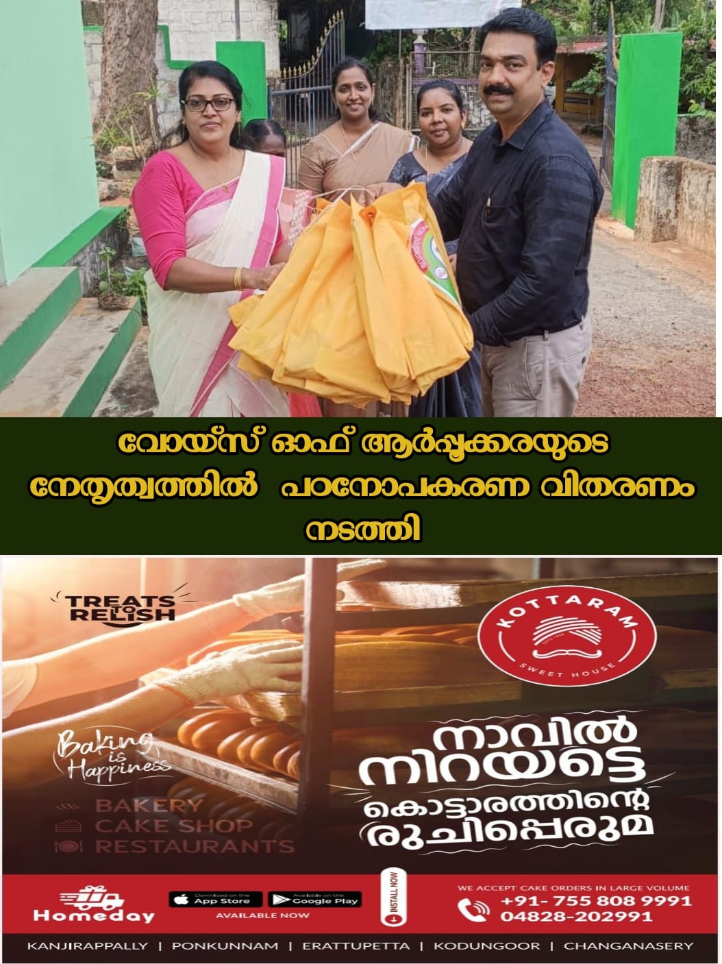 എന്നിങ്ങനെയുള്ള ആർപ്പൂക്കരയിലെ 6 സ്കൂളുകളിലെ 198 കുട്ടികൾക്കാണ് ഗ്രൂപ്പ് VOAR സോഷ്യൽ മീഡിയ വഴി പഠനോപകരണ CHALLENGE നടത്തി ഗ്രൂപ്പ് അംഗങ്ങളുടെ സഹായത്തോടെ വിതരണം നടത്തിയത്.