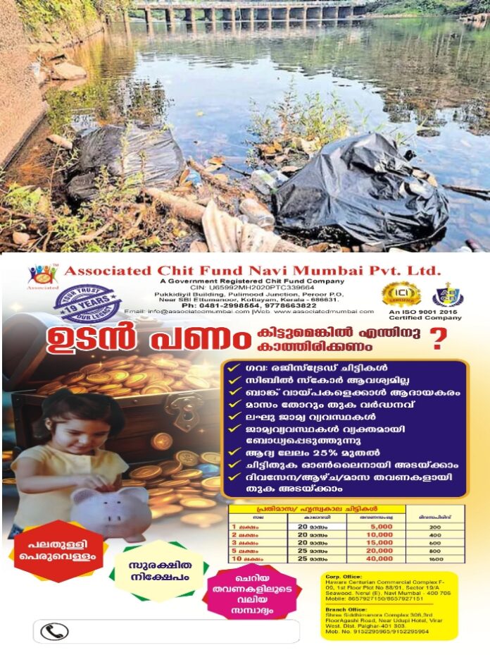 ചെറുവള്ളി: ചാക്കുകെട്ടുകളായി വന്നടിഞ്ഞ മാലിന്യം, പ്ലാസ്റ്റിക് കുപ്പികൾ, മരാവശിഷ്ടങ്ങൾ അങ്ങനെ മനം മടുപ്പിക്കുന്ന കാഴ്ചകളാണ് പഴയിടം ചെക്ക് ഡാമിൽ പാലത്തിൽനിന്നു കാണാനുള്ളത്.