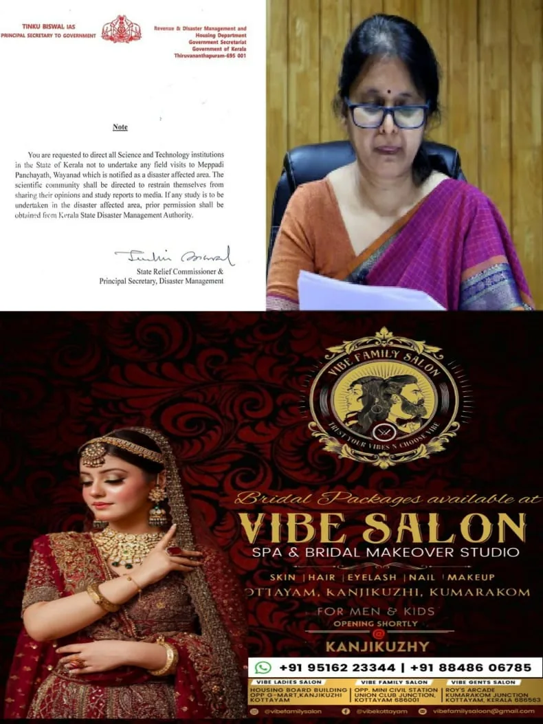സംസ്ഥാന ദുരന്ത നിവാരണ അതോറിറ്റി മേപ്പാടി പഞ്ചായത്തിനെ ദുരന്തബാധിത പ്രദേശമായി പ്രഖ്യാപിച്ചിരിക്കുകയാണ്. ശാസ്ത്രജ്ഞർ അവിടേക്ക് ‘ഫീല്‍ഡ് വിസിറ്റ്’ നടത്തരുത് എന്നാണ് നിർദേശം. പഠനം നടത്താൻ മുൻകൂർ അനുമതി വാങ്ങണം. മാധ്യമങ്ങളോട് ഒരു വിവരവും പങ്കുവയ്ക്കരുത്. പഠന റിപ്പോട്ടുകളോ വിവരങ്ങളോ കൈമാറുകയും ചെയ്യരുതെന്നും രേഖാമൂലം ഇറക്കിയ നിർദേശത്തില്‍ പറയുന്നു.