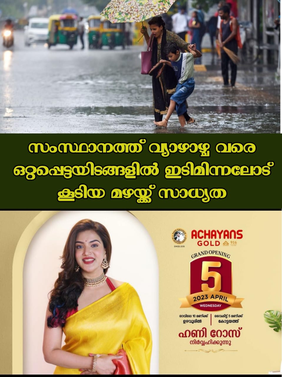 തിരുവനന്തപുരം: സംസ്ഥാനത്ത് വ്യാഴാഴ്ച വരെ ഒറ്റപ്പെട്ടയിടങ്ങളില് ഇടിമിന്നലോട് കൂടിയ മഴയ്ക്ക് സാധ്യത. 40 കിലോമീറ്റര് വരെ വേഗത്തില് വീശിയടിക്കാവുന്ന ശക്തമായ കാറ്റിനും സാധ്യതയുള്ളതിനാല് ജാഗ്രത പാലിക്കണമെന്നും കേന്ദ്ര കാലാവസ്ഥ വകുപ്പ് .