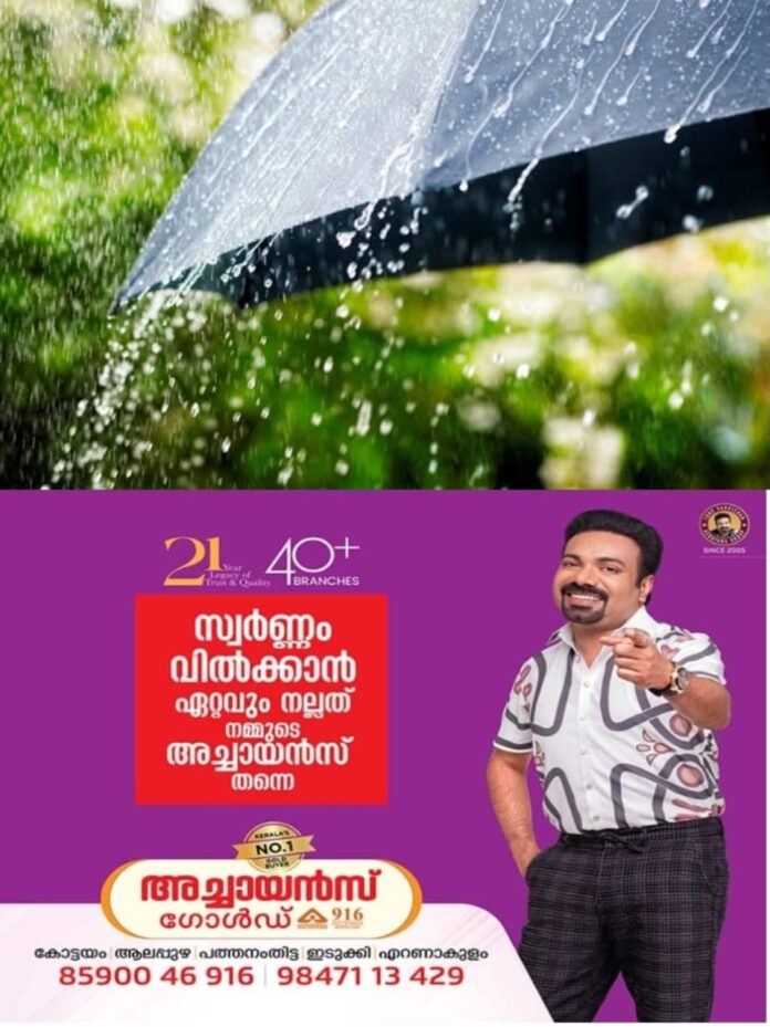കോട്ടയം : വിവിധ ജില്ലകളിൽ മഞ്ഞ (Yellow) അലർട്ട് പ്രഖ്യാപിച്ച് കേന്ദ്ര കാലാവസ്ഥ വകുപ്പ്.