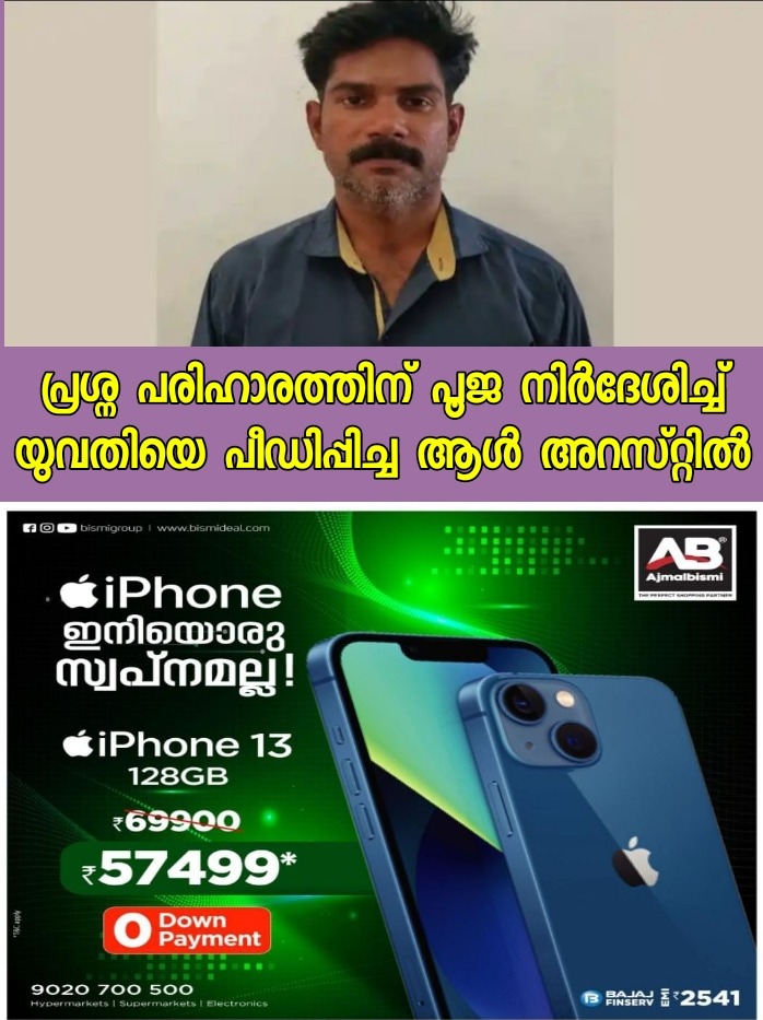 ഇരിങ്ങാലക്കുട: നാരീ പൂജയുടെ മറവില് യുവതിയെ പീഡിപ്പിച്ച കേസില് ഇരിങ്ങാലക്കുട സ്വദേശി അറസ്റ്റില്. കോമ്പാറ സ്വദേശി കോക്കാട്ട് പ്രദീപി (43)നെയാണ് ഇരിങ്ങാലക്കുട പോലീസ് അറസ്റ്റ് ചെയ്തത്.