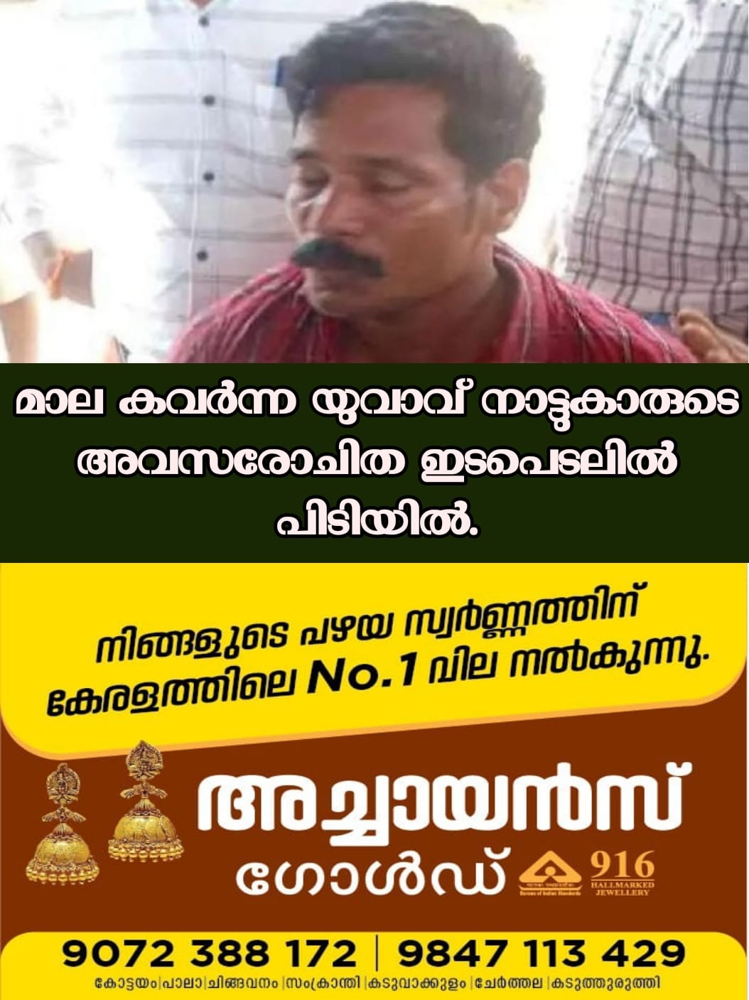 മലപ്പുറം: യാത്രക്കാരിയുടെ മാല കവര്ന്ന യുവാവ് നാട്ടുകാരുടെ അവസരോചിത ഇടപെടലില് പിടിയിലായി. മംഗലം കാവഞ്ചേരി കാട്ടിപ്പറമ്പില് സിനീഷാണ് അറസ്റ്റിലായത്. മലപ്പുറം ചമ്രവട്ടത്താണ് സംഭവം. മാല കവര്ന്ന് രക്ഷപ്പെടാൻ ശ്രമിച്ച യുവാവിനെ നാട്ടുകാര് പിടികൂടുകയായിരുന്നു.